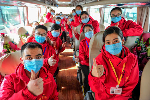 03-р сарын 17-ны үүрээр Шаньши мужийн яаралтай тусламжийн эмчилгээний багийн 43 эмч сувилагч тээсэн автобус хөдөлж, нутгийн зүг жолоо сунгалаа. Тус эмчилгээний баг ннутаг буцсан тусламжийн анхны баг юм.