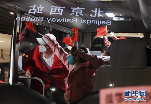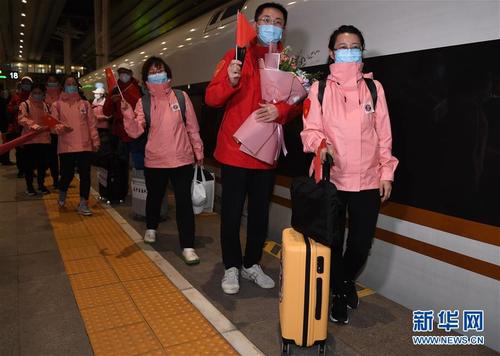 Хүбэй мужид тусалсан Хятад улсын эмнэлгийн багийн гишүүдийн эхний баг Бээжингийн баруун төмөр замын вокзал дээр 03-р сарын 25-ны өдөр ирэв.