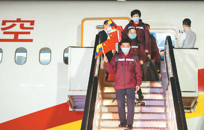 Гуравдугаар сарын 30-ны өдөр Хятадын тахлын эсрэг эмнэлгийн мэргэжилтний багийн бүх гишүүд Венесуэлийн нийслэл Каракас дахь Симон Боливар олон улсын нисэх онгоцны буудал дээр онгоцноос буув. Гэрэл зургийг: САЛГОДО /Синьхуа агентлаг/