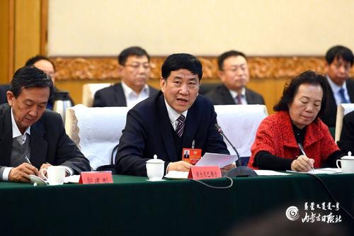 Бугат хотын төлөөлөгчид Засгийн газрын ажлын тайланг хянан хэлэлцэх үеэр төлөөлөгч Вэй Шуаньшы /баруун/ төрийн өмчит аж ахуйн нэгжийн хөгжил, төрийн болон хувийн хэвшлийн эдийн засгийг уялдуулан хөгжүүлэх талаар саналаа идэвхтэй дэвшүүлсэн байна. /01-р сарын 14-ний өдөр/