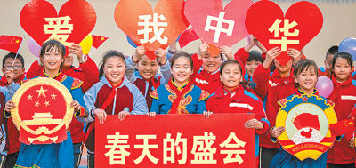 ӨМӨЗО-ы Хөххотын Юй Чюань дүүргийн Шы Төү гудамжны бага сургуулийн сурагчид хоёр чуулган амжилттай зохион байгуулагдсаныг тэмдэглэж байгаа нь