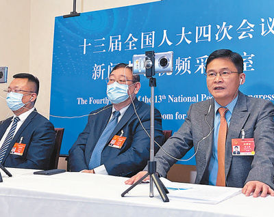XIII сонгуулийн БХАТИХ-ын IV чуулганд оролцсон Хунань мужийн төлөөлөгчдийн баг цахимаар сурвалжилга өгч буй нь /03 дугаар сарын 06-ны өдөр/