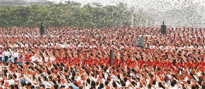 Чуулганы үеэр энхтайвны тагтаа далавчаа дэлгэн нисч, үзэгчид баяр хөөрөөр бялхаж байна