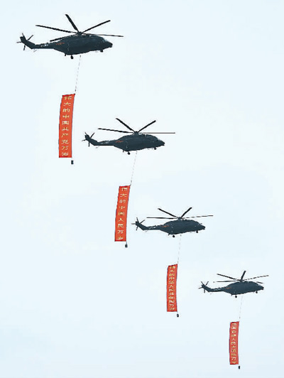 07-р сарын 01-ний өглөө ХКН байгуулагдсаны 100 жилийн ойг тэмдэглэх арга хэмжээний нээлтээс өмнө нисэх онгоцны үзүүлбэр