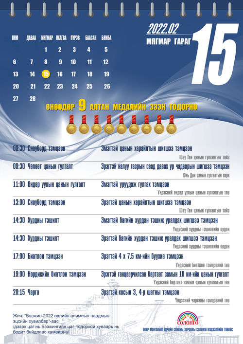 Бээжингийн өвлийн олимпын алтан медалийн тэмцээний цагийн хуваарь /02-р сарын 15-ны өдөр/