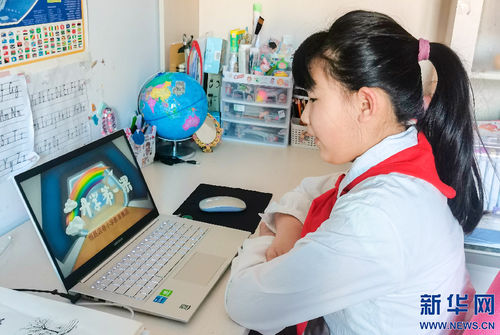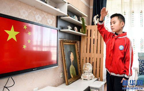 Хөххотын Жинчао бага сургуулийн сурагч Ван Зань гэртээ онлайнаар туг мандуулах ёслолд оролцов. /03-р сарын 01-ний өдөр/