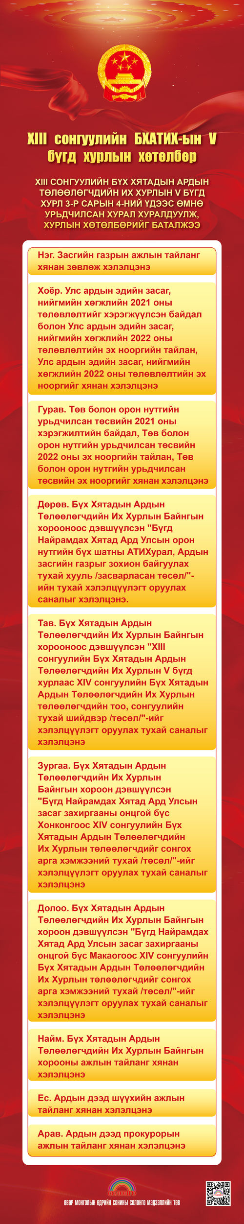 XIII сонгуулийн Бүх Хятадын Ардын Төлөөлөгчдийн Их Хурлын V чуулган 03-р сарын 04-ний үдээс өмнө урьдчилсан хурал хуралдуулж, хурлын хөтөлбөрийг баталжээ.