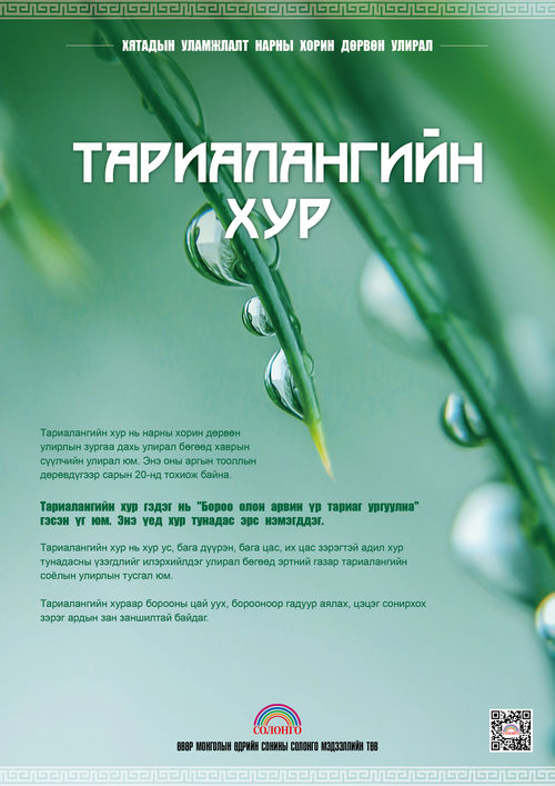 Тариалангийн хур гэдэг нь "Бороо олон арвин үр тариаг ургуулна" гэсэн үг юм. Энэ үед хур тунадас эрс нэмэгддэг.
