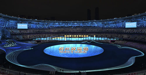 Налгар намрын Ханжөү хот онцгой гойд үзэсгэлэнтэй. Ёстой л “хүний орчлонгийн диваажин” гэлтэй. 09-р сарын 23-ны үдэш "Дэлхийд хамгийн үзэсгэлэнтэй тансаг тэнгэрийн хот" Ханжөү дэлхийн хүн зуны анхаарлын цэг болж, Ханжөү дэх дэлхийн анхны өвөрмөц дизайн болох Бадамлянхуа цэцгийн хэлбэртэй спортын ордноо Азийн спортын XIX наадмын нээлтийн ёслол" Азийн давалга" арга хэмжээ амжилттай сайхан боллоо. Ийнхүү Хятад улс гуравдагч удаа Азийн спортын наадмыг зохион байгуулж байгаа юм.