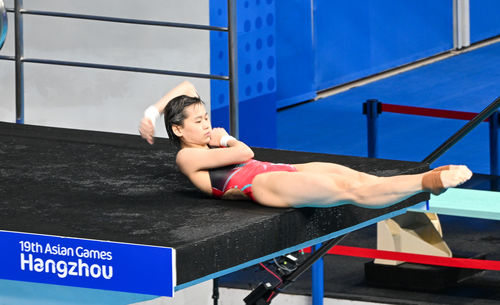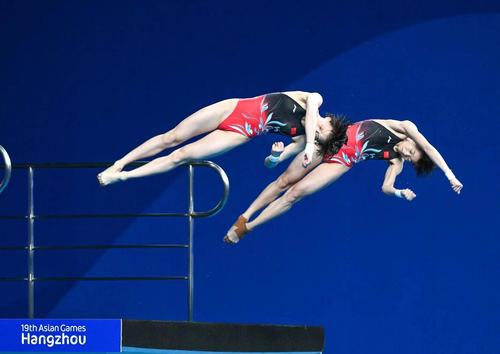 Ханжөүгийн XIX Азийн наадмын усан шумбалтын төрөл Ханжөүгийн Олимпын Спортын ордонд боллоо. Эмэгтэйчүүдийн 10 метрийн тавцангийн финалд Хятадын Чюань Хунчань,
