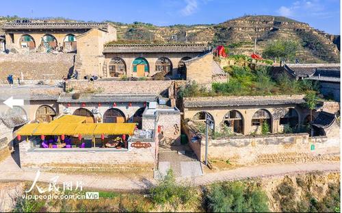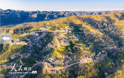 2025 оны 10-р сарын 19-ний өдөр, Хятадын Шаньси мужийн Люлян хотын Линь шянйи Лижиашань тосгоны нүхэн гэр хороолол жаргах нарны гэрэлд үзэсгэлэнтэй харагдаж байна.