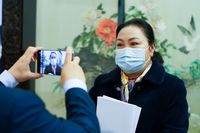 2021 оны 3 сарын 7Ван И сэтгүүлчдийн асуултад хариулав.