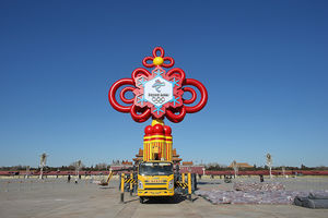 2022 оны 1 сарын 14Бээжингийн өвлийн олимпын сүлдийг Тянь Ань Мэнь талбайд босголоо.